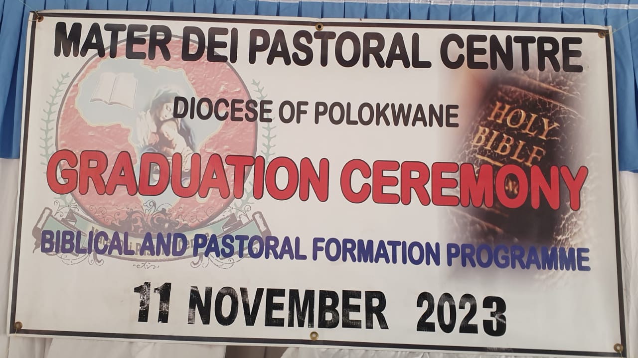 At the end of each year course there is a formal graduation ceremony wherein His Lordship Right Reverend Bishop Madimetja Jeremiah Masela of the Catholic Diocese of Polokwane bestows completion certificates to the graduates, the graduation ceremony is proceeded by a Holy Mass celebrated by the bishop. This year marks the 13th graduation ceremony of the Bible Study course at Mater Dei Pastoral Centre.